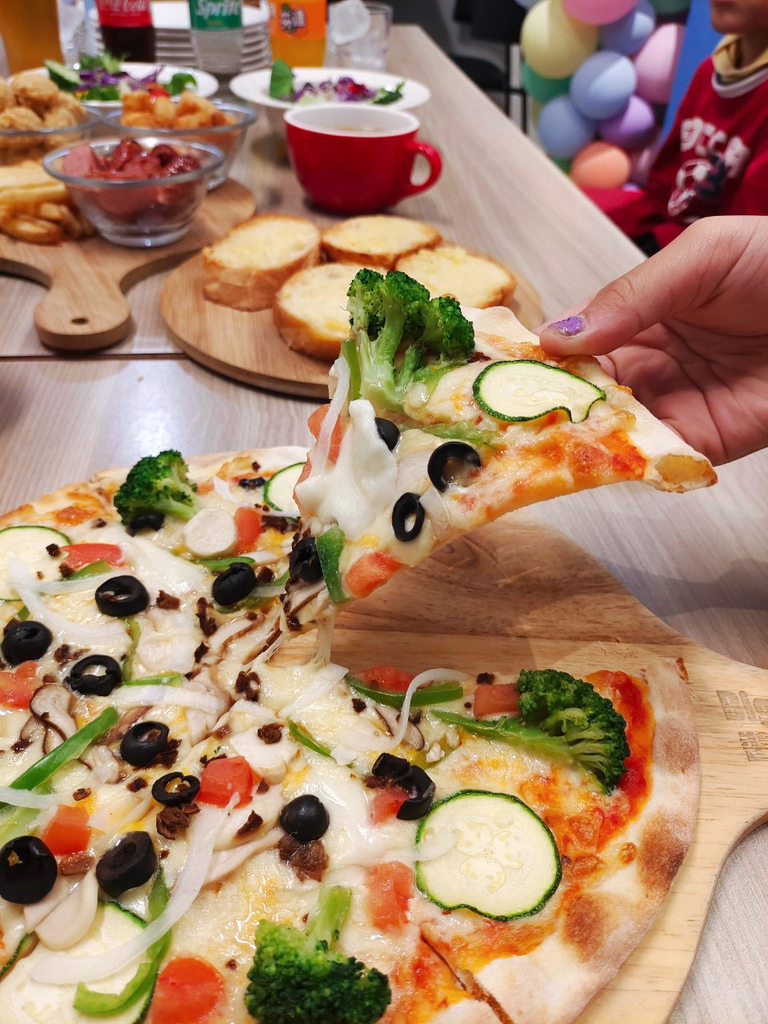 ▼田園鮮蔬是我最喜歡的披薩口味之一,蔬菜的清爽解膩,搭配起司香濃提味,吃個兩三片也不會有負擔!