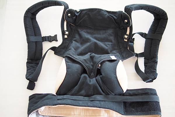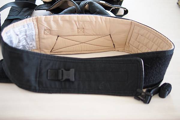 腰部的部份是採用魔鬼氈加上扣環, 這個部份應該是360比較新的地方, 以前的款式好像沒有魔鬼氈? 魔鬼氈黏緊後就超有支撐性的, 扣環應該是預防鬆脫的雙重保障, 背上小孩後的重量大部份都會落在腰間