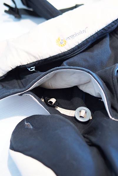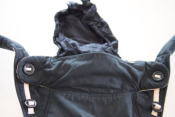後揹時寶寶睡覺用的頭套就收在拉鍊裡