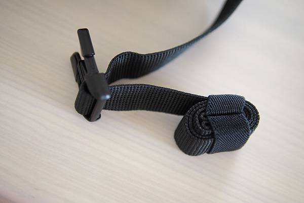 調整長短鬆緊的帶子一樣在尾端有可以收納的鬆緊帶, 我個人很喜歡這個設計, 可以把多餘的帶子折好收納不會一堆線垂在那邊