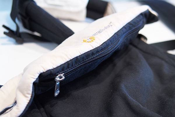 魔鬼氈真個是讓人又愛又恨的設計啊, 它讓揹巾還蠻能快速穿脫固定, 但是老實說我個人不太愛魔鬼氈的東西, 很容易會黏到衣服, 結果把衣服給弄壞了, 雖然說現在穿的衣服也很常被小孩給搞爛 XD