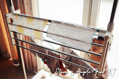 Newstar的紗布巾很容易乾,手洗一下晾著,幾個小時以後就完全乾了,剛好可以下一次吃飯再使用!