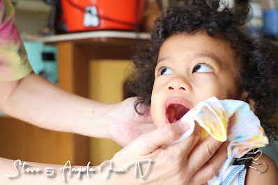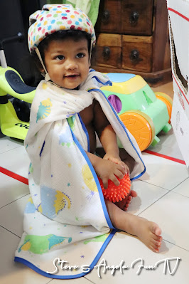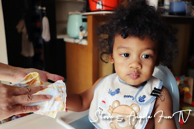 我們現在在訓練Tater吃完飯要學會自己擦桌子,我發現Tater對有花樣的紗布巾特別感興趣,一歲的孩子正是對形狀和顏色特別敏感的年齡,選擇對的東西,讓整個訓練過程容易很多!