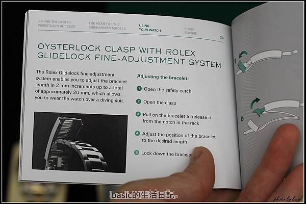 水鬼特有的GLIDELOCK系統 , 讓錶帶的微調比其它系列的方便 , 它可以一格2mm的微調 , 最多可以調20mm的範圍 , 且不需任何工具 , 比起713的錶扣要方便許多..