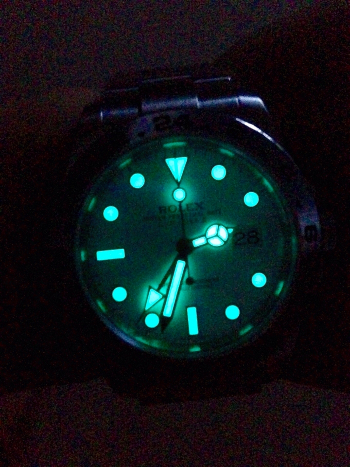 亮到可以照出面盤的字,比深海還亮,真的是為了洞穴探險設計,附上深海的夜光: