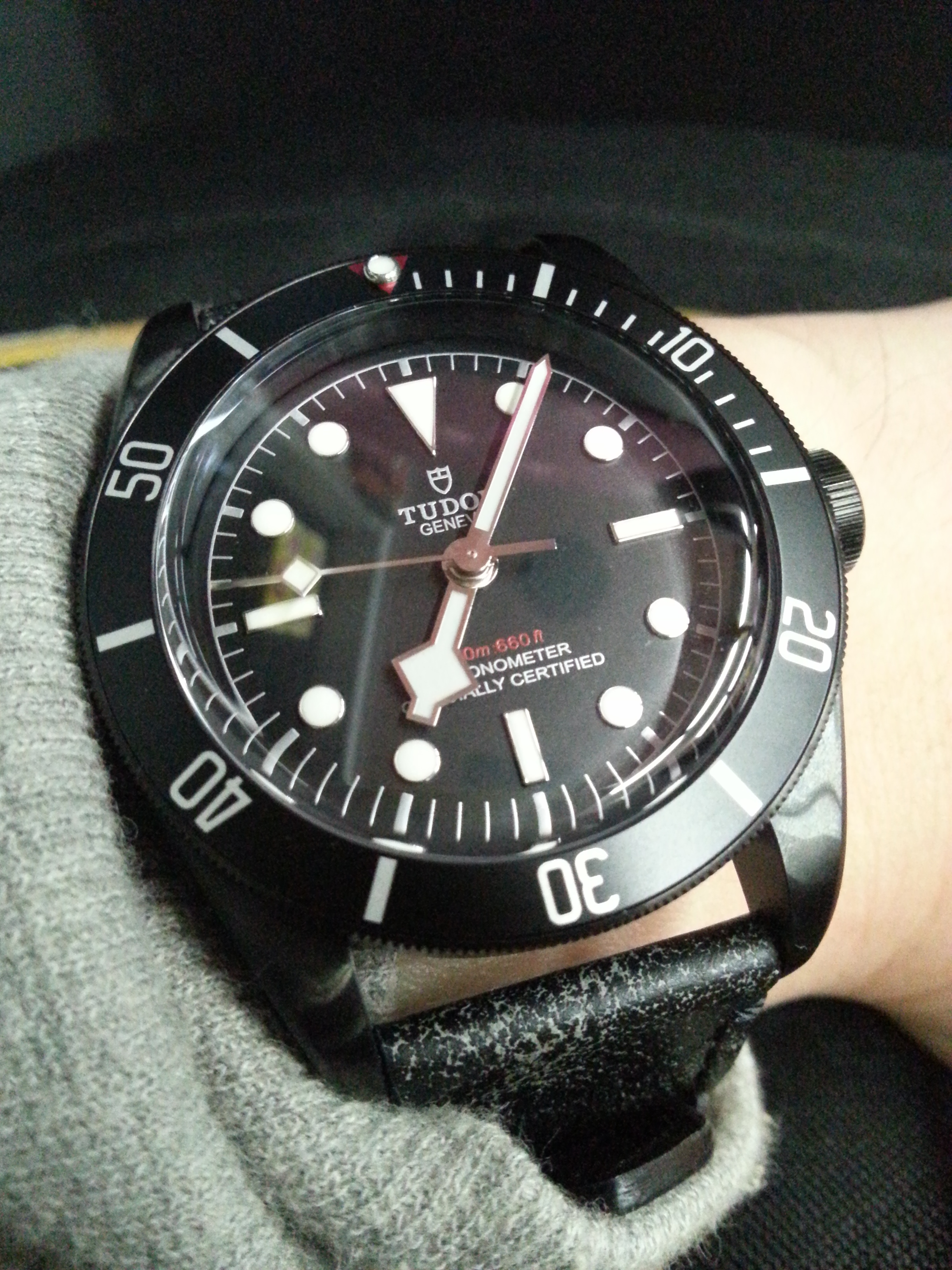 <blockqote>fav2277 wrote:你們的毒性也太強了...(恕刪)其實都係睇返自己喜歡啦!舊有舊既好……只有舊款ETA芯先有細花,比較精緻。新款用返盾牌……换來tudor自家制機芯,天文台認證,70小時動能。小弟選擇全黑……喜歡佢既紅色倒三角及表面紅色字。