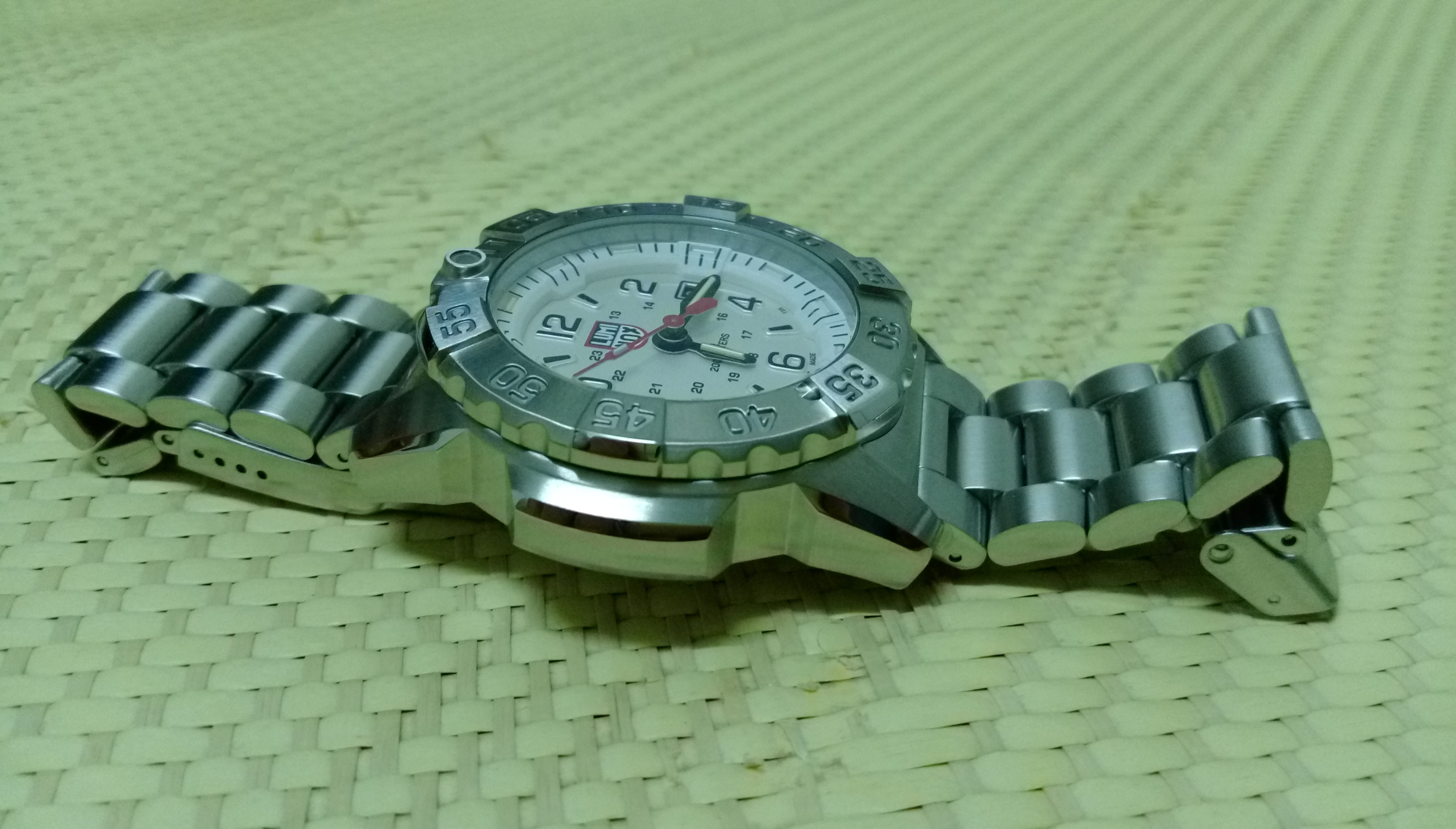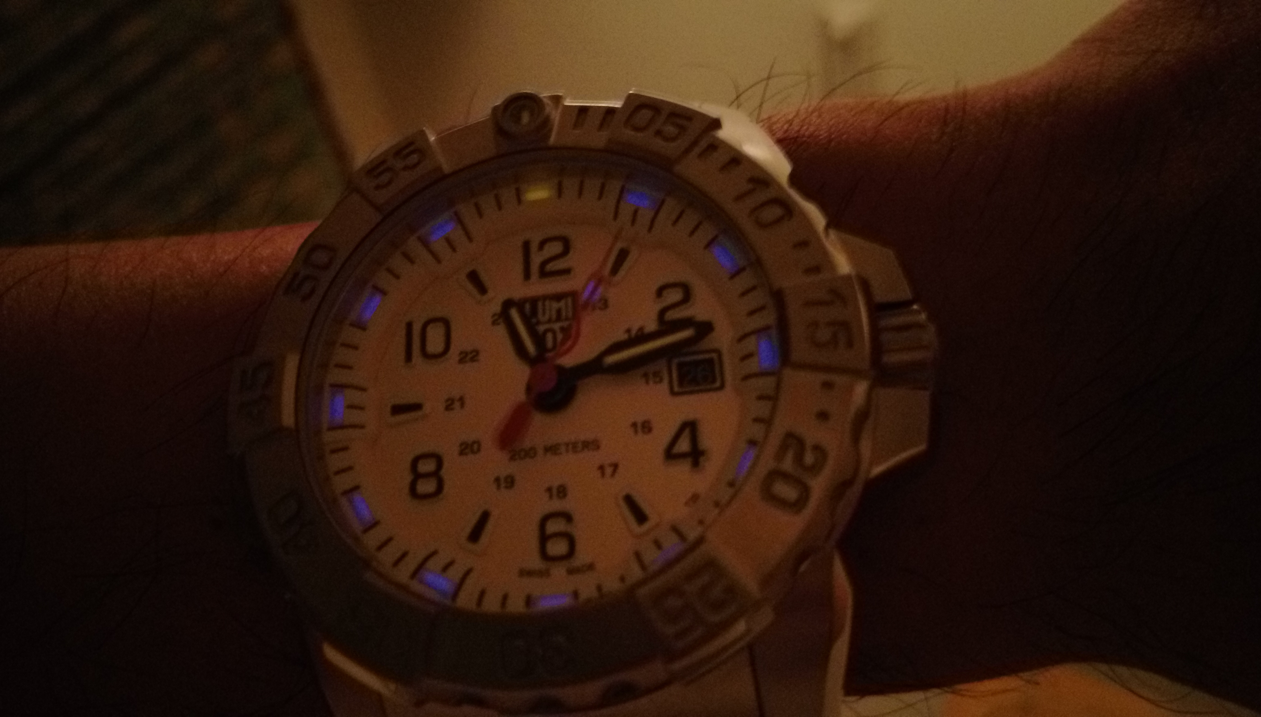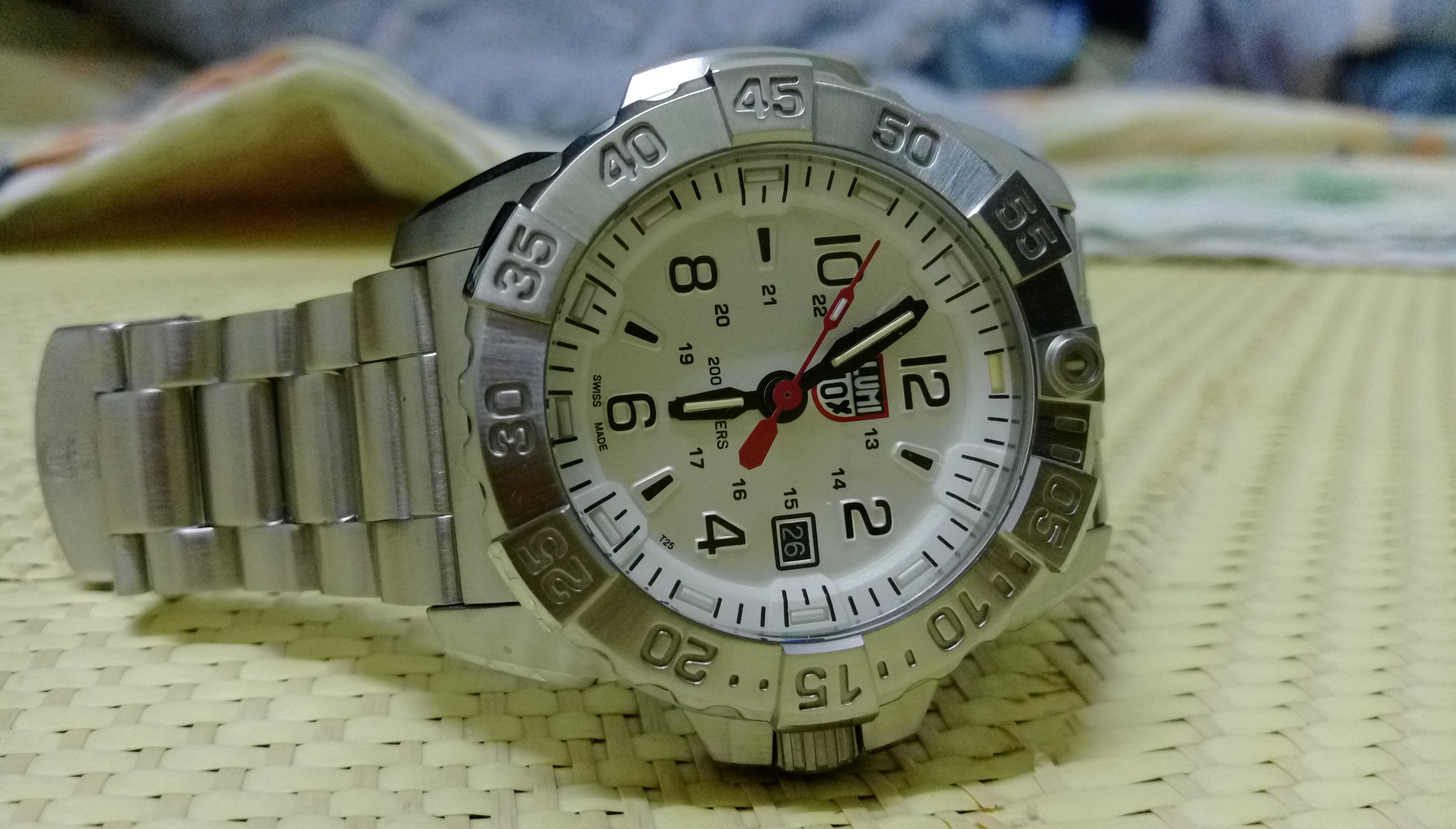 機械錶戴久了,想回來戴石英錶,幾年前就有在考慮雷明時,但看來看去總覺得少了點甚麼,直到最近這個新款出來,今天終於忍不住把它帶回家了.扎實的提袋,之後可以當購物袋用.錶盒也很扎實,可以做眼鏡盒.贈品主角來囉夜光效果不錯