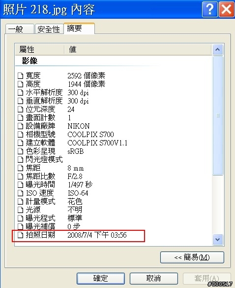 相機時間為台北時間 在本機看EXIF的照相時間是正確的