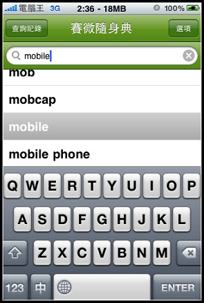 賽微隨身典的介面非常簡單,就是直接輸入要查詢的單字即可: