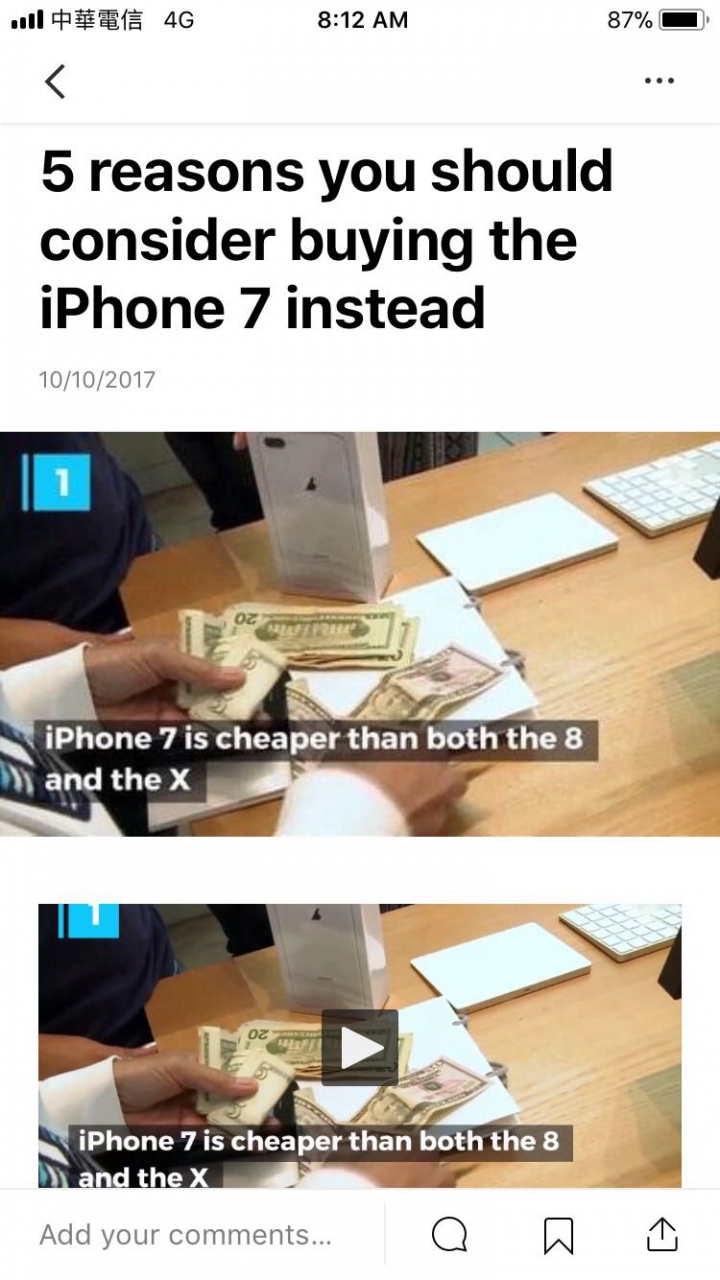Iphone保值程度都差不多這兩隻的我會推薦買Iphone7,以Plus來看地標價格比官網便宜1000Iphone8只多出了無線充電(還要多花錢買充電組)、新的處理器以價格來看一定是秒選Iphone7,但如果覺得很想要新的,那建議不如直上IphoneX