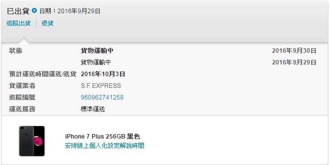 7+ 128G 黑,10/1~7到貨的一樣還在處理中,根本不知道到底處理到哪了,到現在至少連封是否一樣到貨日期的簡訊或信件都沒收過........