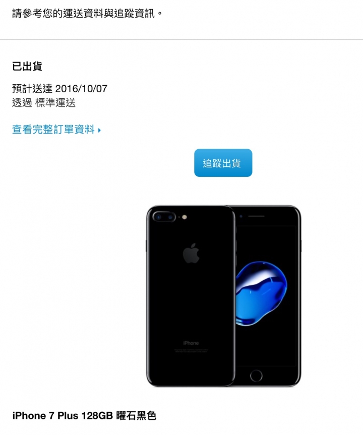 訂購日期:9/10原本預計時間是:10/7~21iphone 7 曜石黑前天下午變成準備出貨, 剛剛變成已出貨狀態 貨物運輸中 2016年9月30日預計運送時間運送/送貨 2016年10月6日貨運業者 TNT EXPRESS INTERNATIONAL