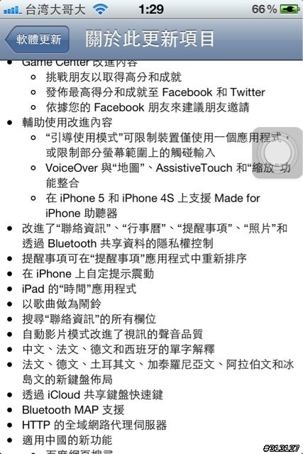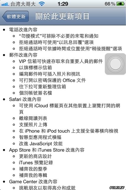 千年之夢 wrote:好像不一定要升級ITUNES剛剛連上 ITUNES後用手機點選軟體更新後就有了 iTUNE升級是為了防止備份檔無法使用的樣子所以iTUNE一定要先更新..(有人還沒更新iTUNE嗎 ?)