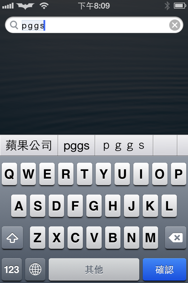 現在我用拼音輸入,同樣也可以快樂的輸入PGGS===>蘋果公司。