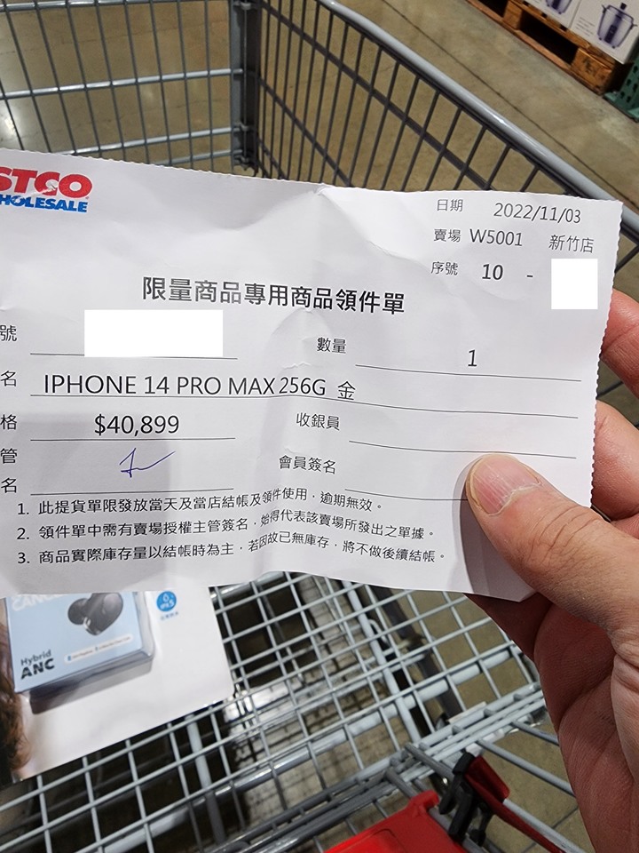 Costco 11月初之後pro pro max真的常常有現貨啊照我的取貨單序號看11/3那天全國Costco光一家新竹店就至少有10台14 pro max 256g現貨可買沒現貨得等到12月才能出貨的應該只有apple自家開的apple store吧Costco的貨還是大陸製造的不是傳說中的印度貨只是通常有貨很快就會被搶完所以要常去碰運氣用黑卡+刷卡可以再回饋3%現金 90天內無外傷可無條件退貨這肯定是台灣的所有iphone通路裡的最低價了有圖有真相