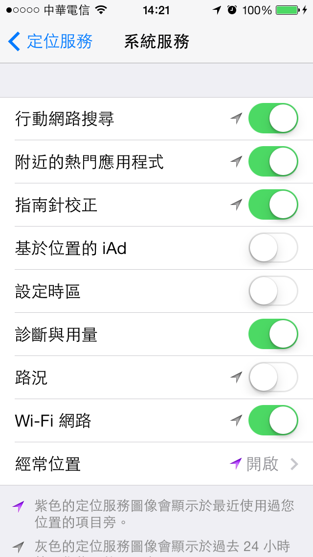 lulan wrote:診斷與用量不要開 很...(恕刪) 我把用量和診斷關掉了經常位置之前就一直開著,現在也關掉了但是定位的符號還是存在...要把整個定位服務關掉才會消失...該不會要我把整個都關掉吧!