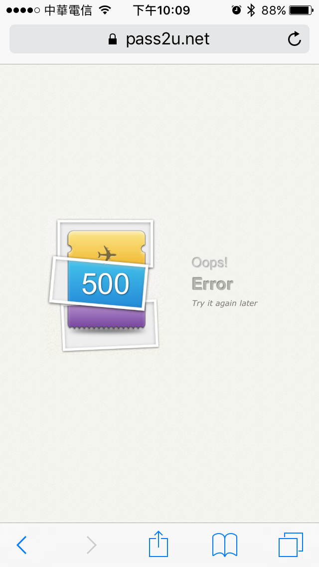 yqing wrote:用自建模式不要用網...(恕刪) 感謝!我再試試看!=======剛剛試過有出現了「No Barcode」選項。當票卡製作完成後,掃描 QRCode 顯示沒有可用的票卡,用 Safari 輸入網址並前往的時候,一開始會顯示票卡,但是會顯示以下畫面:不知原因為何?感謝幫忙與指教!