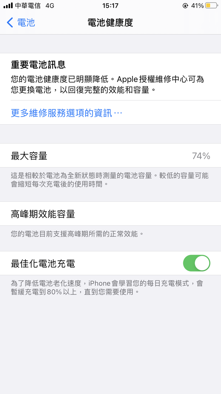 電池健康度還有74%,