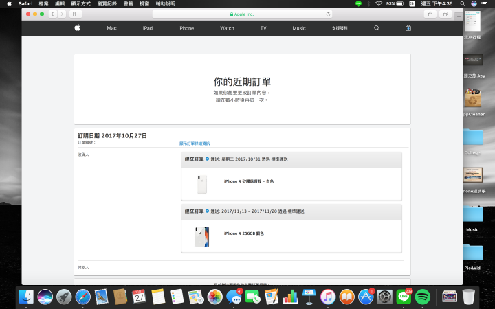 真的是意外的好搶,一進去先搶了隻256銀色,還分期付款按完後完成訂單退出後看到可以預約直營店取貨,沒多想就再預約一隻256銀色還蠻驚訝都是11/3號能拿到,現在有一週時間可以慢慢思考要取哪隻,不過取消好像有點浪費XD