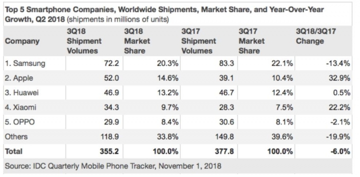 全球智慧手機出貨連4季衰退