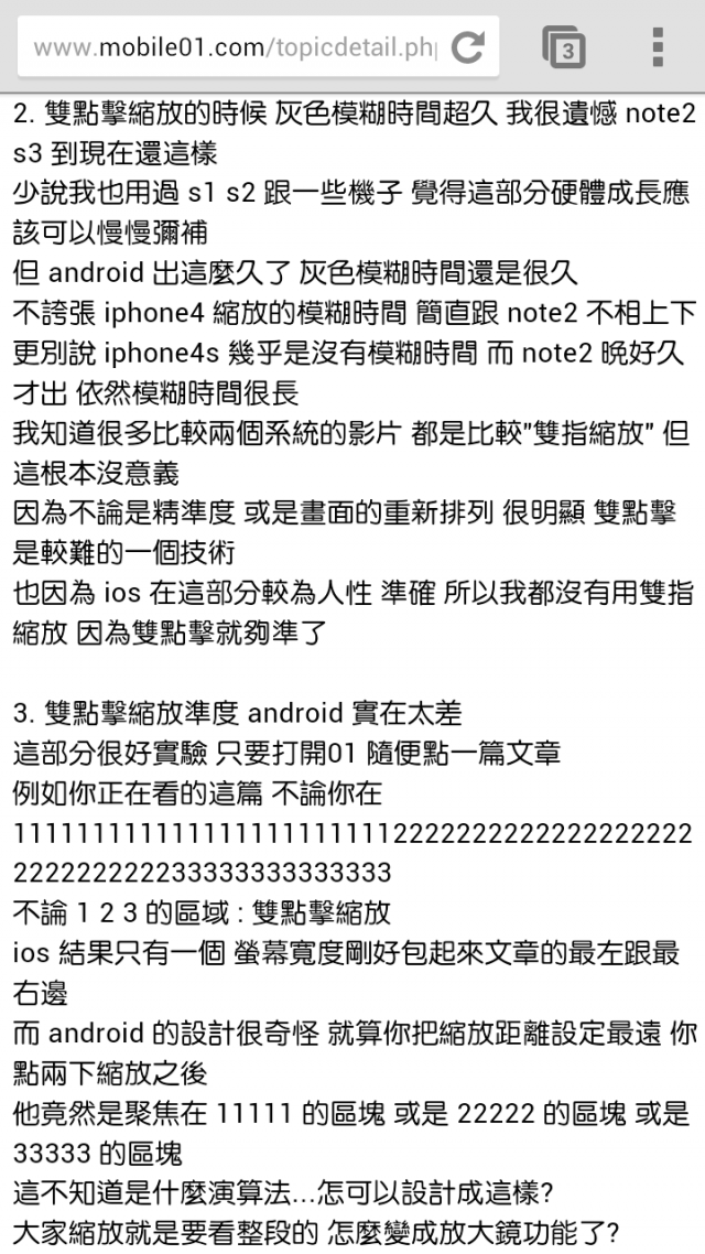 Colla wrote:滿幽默的你回答的第三...(恕刪) 不,請你再把圖片看清楚一點,除了333333那行沒有自動拆行斷句(這個我就不知道為什麼了但是前幾樓是用GOOGLE瀏覽器的網友可以順利斷這句)其他都是自動斷句成可以閱讀的模式,不是單純放大鏡功能