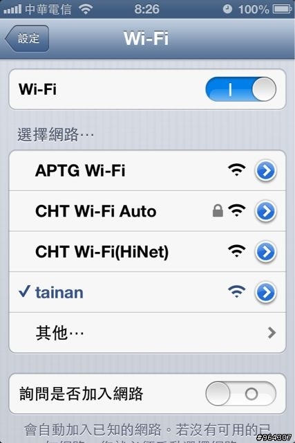 我以前用中華熱點只需要登入1次,之後只要有搜尋到熱點就會自動連上,不過從上個星期〜變成有搜尋到訊號就會跳出登入畫面……雖然不需要輸入帳密,不過多按這幾下還真的很奇怪唉……我原本都不需要這樣按啊!!!中華電信是在搞什麼啊!!