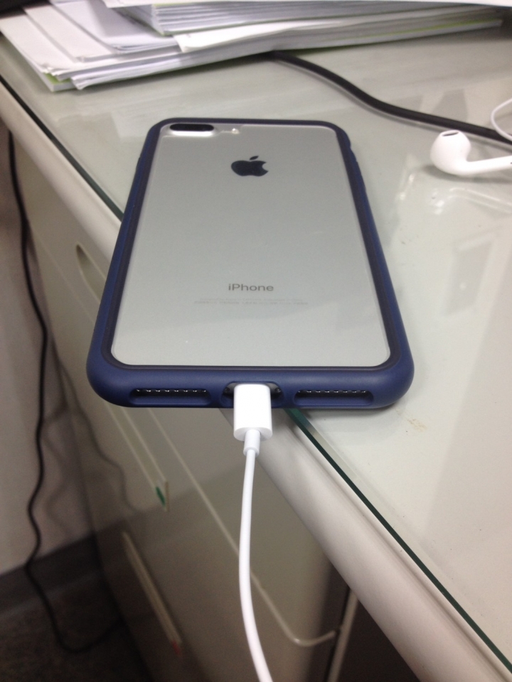 手邊沒原廠充電線無法拍,不過這次i7附的lighting耳機頭比充電lighting頭大些,所以我就拿同事手機拍了一張,完全沒問題唷事實上,大大們所講的無法插入的是指一些副廠充電線,而犀牛盾早就改版過了,已經解決開孔的問題了。惡魔喝咖啡 wrote:請問leon0919...(恕刪)