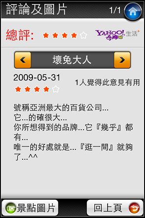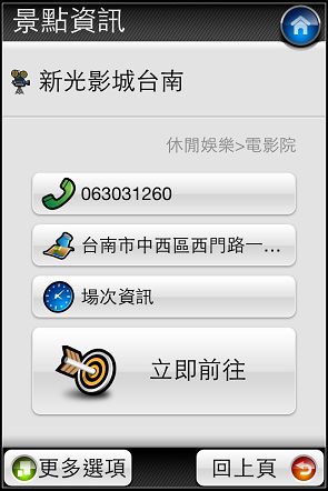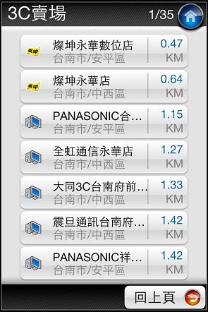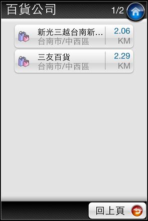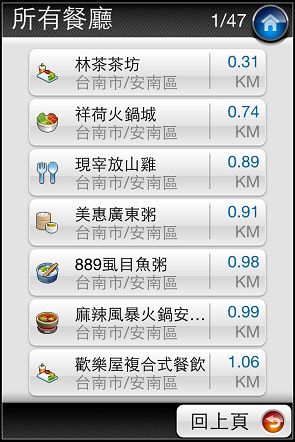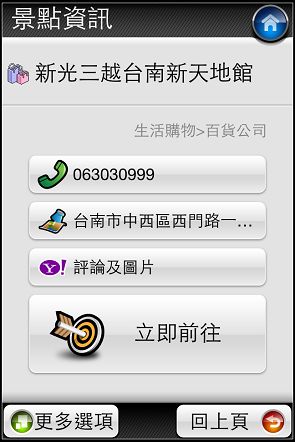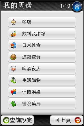 生活資訊也是跟Android版相同,導航王與PAPAGO最大的差別之一就是在LBS(適地性服務)方面功能作得非常完善,使用起來非常方便: