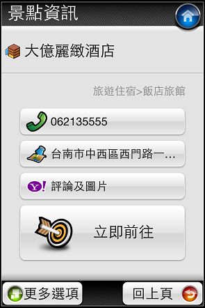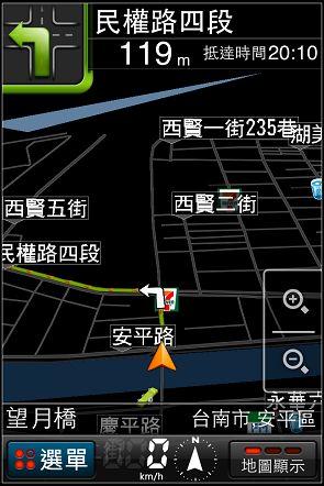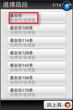 不過「導航王」還真的是100%移植,我個人覺得是缺點的部分也完整保留,如地址導航(路段地址)整體輸入流程比較壟長,以下面的地址(台南市義安街XXX號)為例筆者總共花了10個步驟才完成: