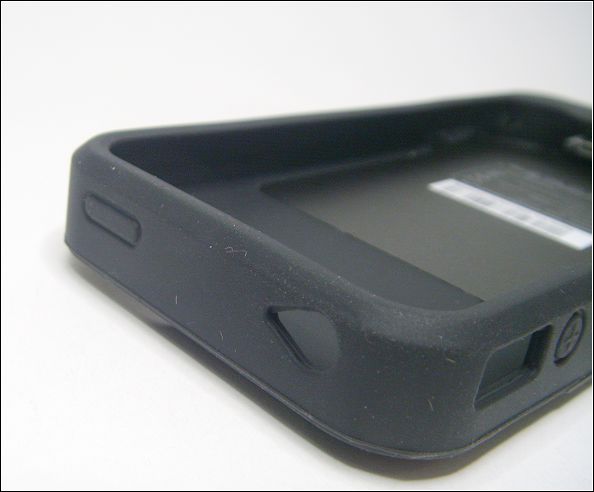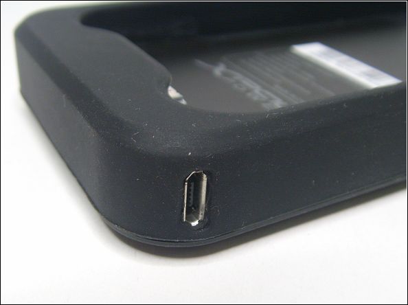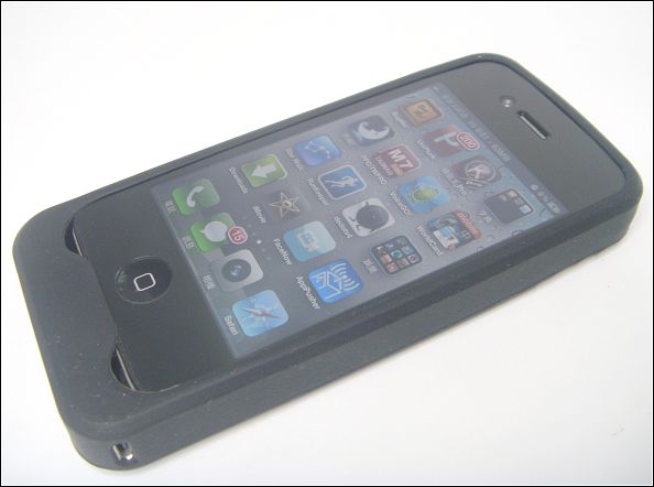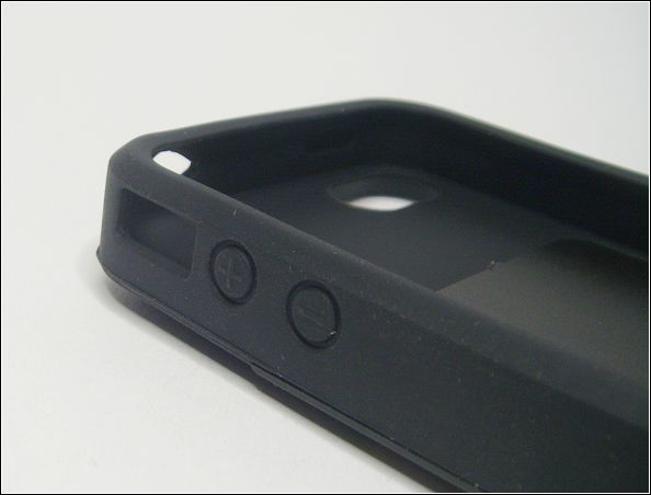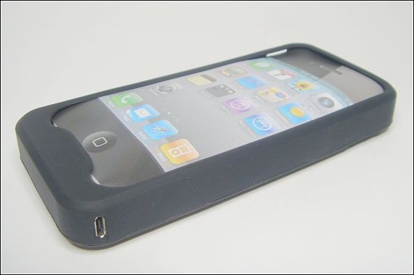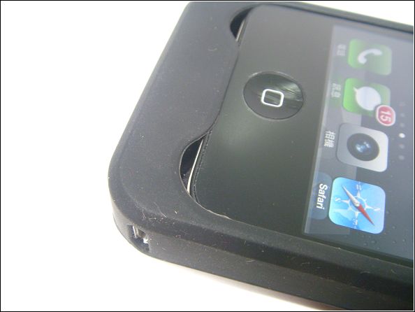 Energizer AP1201本體特寫,其實如果不將iPhone4跟AP1201放在一起比較的話恐怕會覺得這只是一個iPhone4專用的果凍套,事實上AP1201也的確有果凍套的保護效果。除了背蓋是塑膠材質以外其他部分都是由緩衝性良好的矽膠製成,對脆弱的iPhone4來說除了增加續航力以外也提供了很好的保護作用: