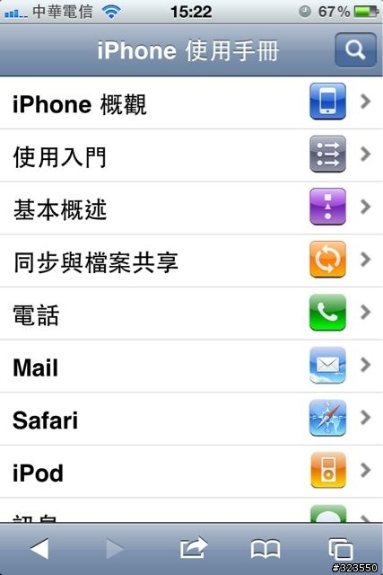 啟動safari並打開iPhone 使用手冊