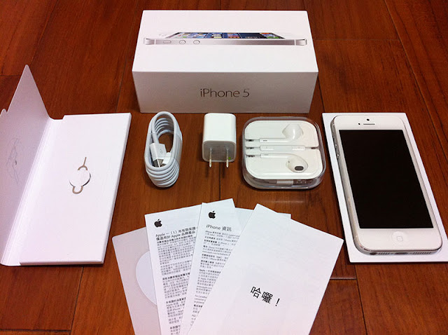 Nano SIM卡取卡針、電源插座轉USB、USB傳輸線、盒裝Apple線控耳機、iPhone 5、使用說明、操作指南、蘋果貼紙