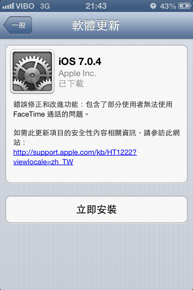 YUN12345 wrote:你確定升的是6.1.3? 是真的,我用了2年的iphone 4S,原本是5.0.1,之前要升級前,他是寫升級為7.0.4,我按下之後,原本以為會直接升級成7.0.4,結果他是先升級為6.1.3。然後他"軟體更新"的頁面中,他顯示7.0.4已下載,同時顯示可以安裝。所以我目前是停在6.1.3,但狂噴電 ~