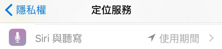 定位服務裡面,有一項是 "Siri 與聽寫"