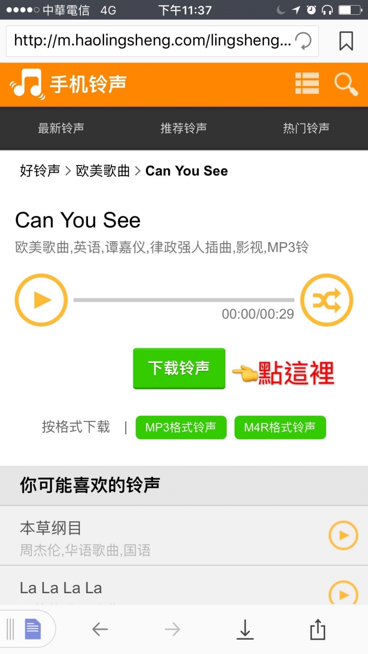 9. 進入手機鈴聲網站,點擊「下載鈴聲」