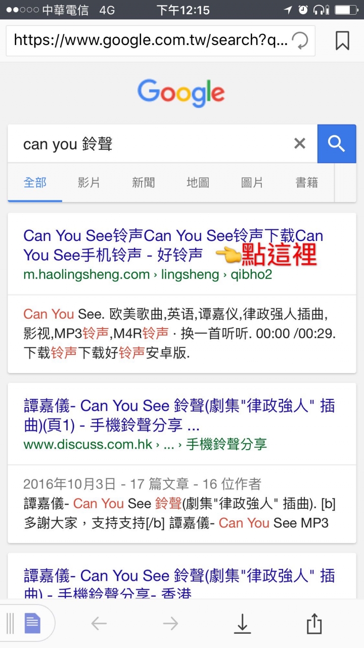 7. 無論您要搜尋任何鈴聲,字串的後面記得加入關鍵字「鈴聲」