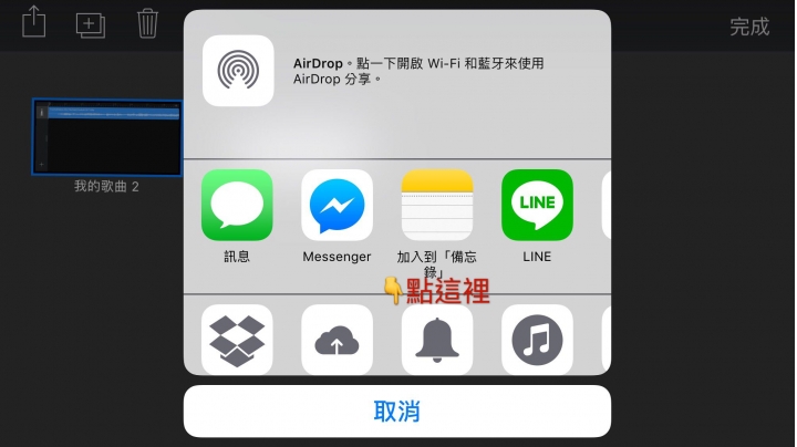 22. 它會自動跳回音軌頁面,把檔案直接拖到最上面那一格在放掉