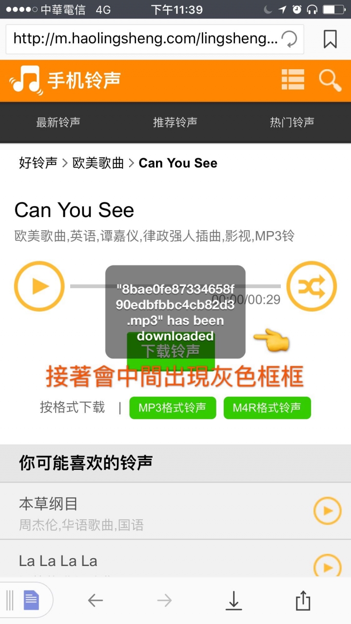 於是經過了幾番的摸索後,終於把鈴聲給下載成功!