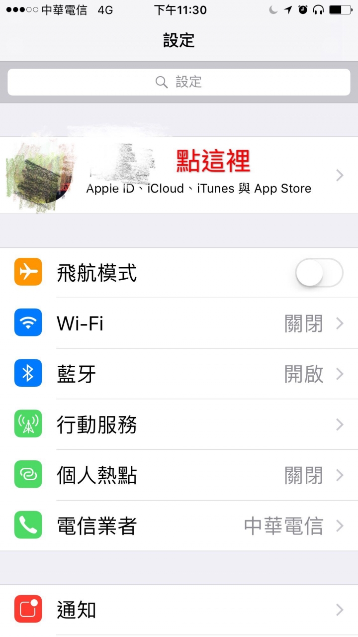 2. 接著進入「手機設定」後,點擊最上方的個人選項