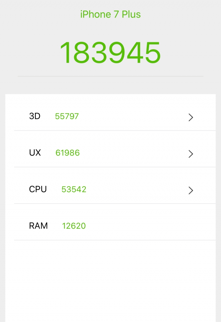 根本跟電池無關,是手機溫度太高保護降頻,不管什麼手機都一樣。我手機是前年出的iphone7首批,使用已經快一年半,電池應該不會好到哪,前幾天心血來潮測了一下,同一個機子,最新的IOS版本,測出10XXXX,當時就發現手機溫度很高,後來等冷卻一段時間後再測,跑到17XXXX了。玩了手遊後,手機超燙時測試休息5分鐘後有點溫度測試等待一小時冷卻後測試