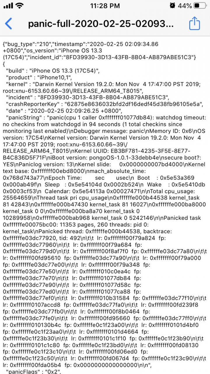 tuwy wrote:如同標題我想問問...(恕刪) App不可能讓你的手機重開機,除非它是越獄程式,攻擊了漏洞引發kernal panic才會重開機去設定》隱私權〉分析與診斷》裡面找有沒有”panic...”開頭的檔案