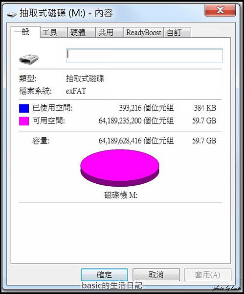 插入讀卡機 , 我們可以看到容量為59.7GB(電腦換算的問題)