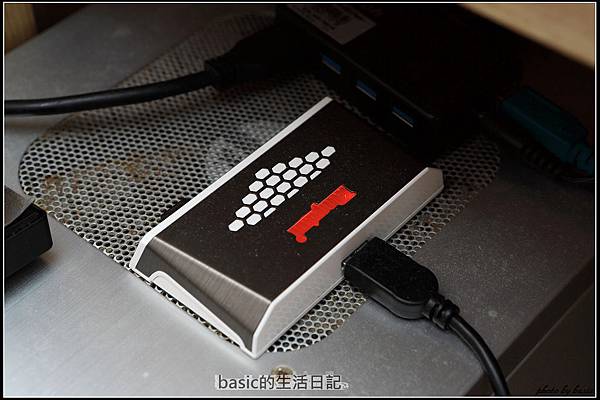 近一點看 , 可以看到正面有紅色的Kingston品牌字樣.. , 下面的六邊形圖案感覺像是通風口..