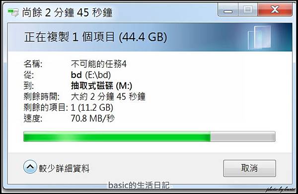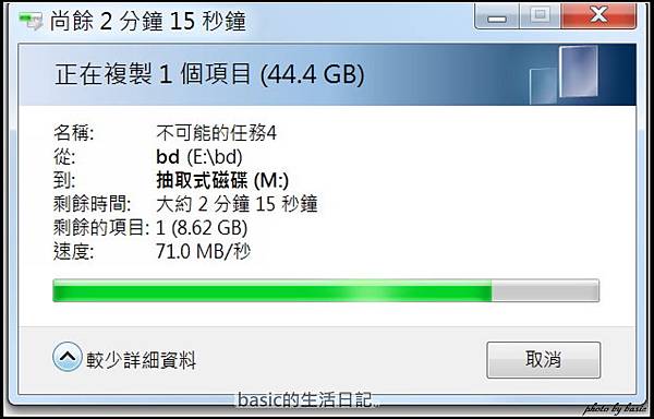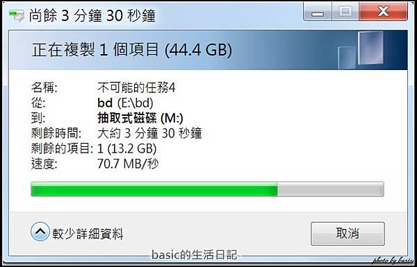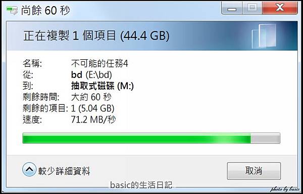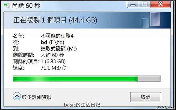可以看到寫入速度穩定的維持在71MB/S左右..