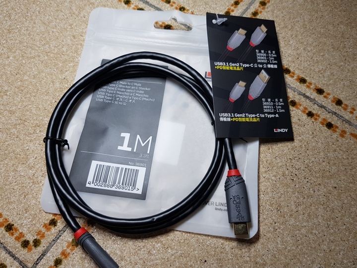 線材:LINDY 36901 USB3.1 TYPE-C 傳輸線