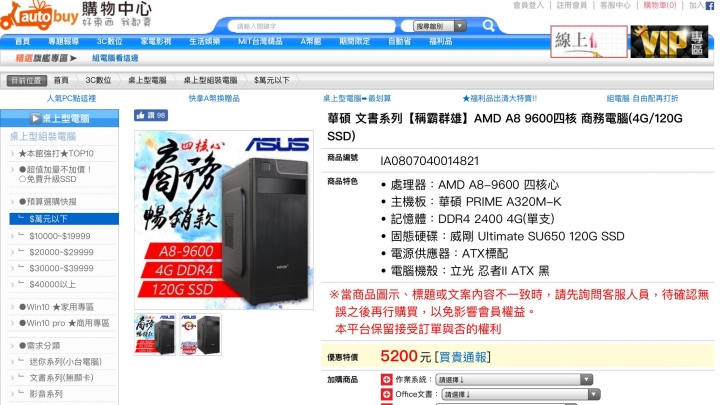 winmike wrote:3-4-5k的文書...(恕刪) 還是有,比如:1. pchome24上面DIY電腦,預算選5000以下就能看到不過這一類就是效能差、記憶體4G、電供雜牌就看樓主自己能不能接受2.二手市場想省事買整機,想便宜買零件自己DIY,這一類就是要賭點運氣,(零件剩餘壽命)自己也要有排除故障的基本能力,不過效能可以挑到相對比較好的。3.自己挑選最便宜的新品零件組裝