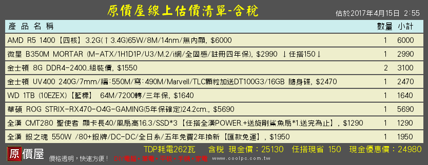 R5 1600(6C12T)+b350 plus+16G+275G ssd+rx470+450w+黑魅騎士