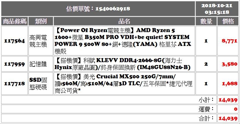 各位大大們好小弟最近換了新顯卡舊顯卡想說送我最好的好朋友因為他現在沒有電腦可以用想說送台電腦給他當作生日禮物預算只有12K 最多只能到15K不用銀幕及作業系統,能讓他陪我吃雞就好謝謝各位大大了另外請問一下,有菜單後給原價屋會幫忙組裝嗎?或是台中有其他推薦的店家嗎?