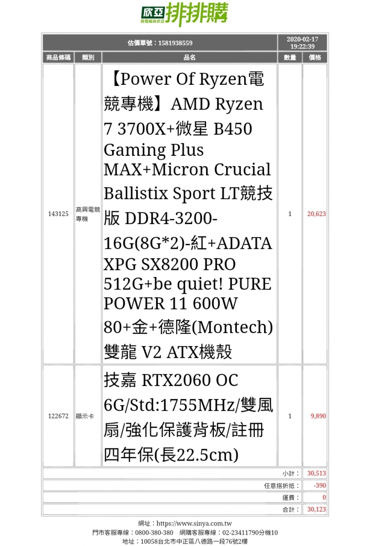處理器用 3600 6核12緒 直播/遊戲/剪輯輸出一般都 OK顯卡可用 2060 雙扇的,遊戲一般特效還可以,預算夠追加的話就上 2070S 更好雙硬碟組 1T + 512G M2-SSD 素材或成品等比較肥的資料可以放 HDD、較省記憶體用 16x2 直播/剪輯或多工時 比較足夠電源可用 550W 銅牌五年保、有搭機殼、性價比很高這樣 28K 左右