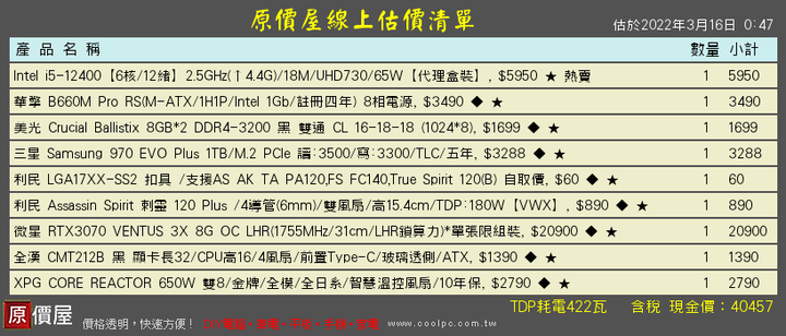 目前考慮I7-12700配華碩3060顯卡...(還是I5-12400就足夠??)